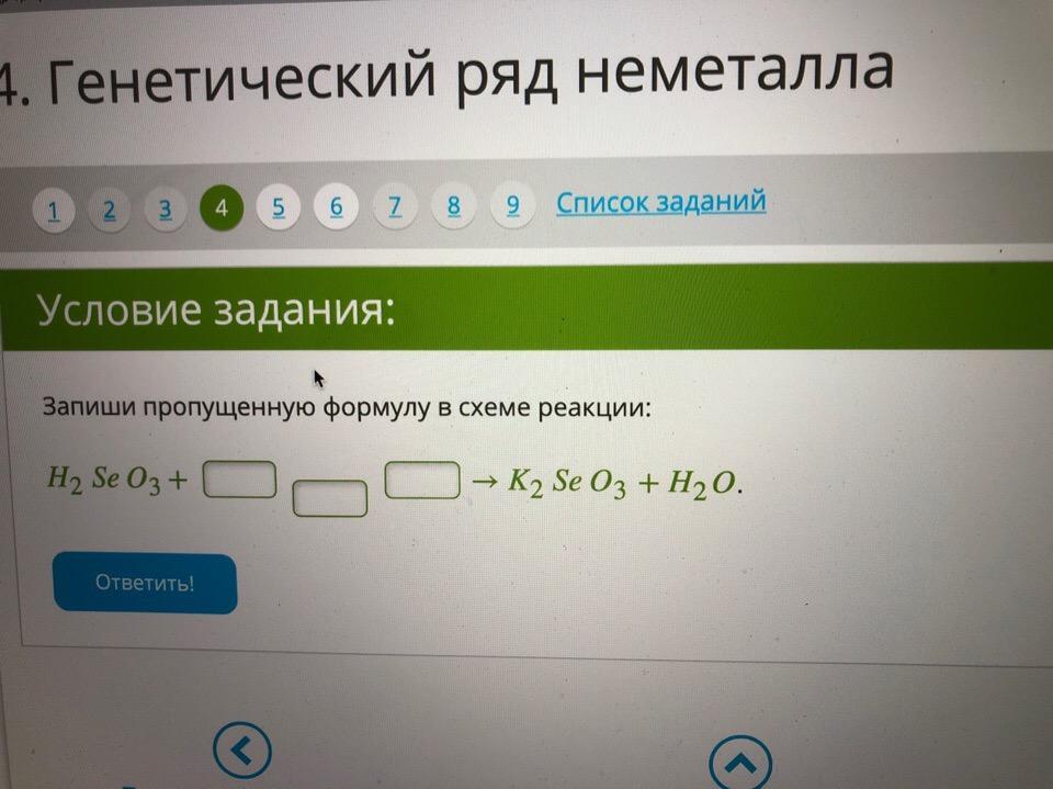 ЗАДАНИЕ:ЗАПИШИ ПРОПУЩЕННУЮ ФОРМУЛУ В СХЕМЕ РЕАКЦИИ: