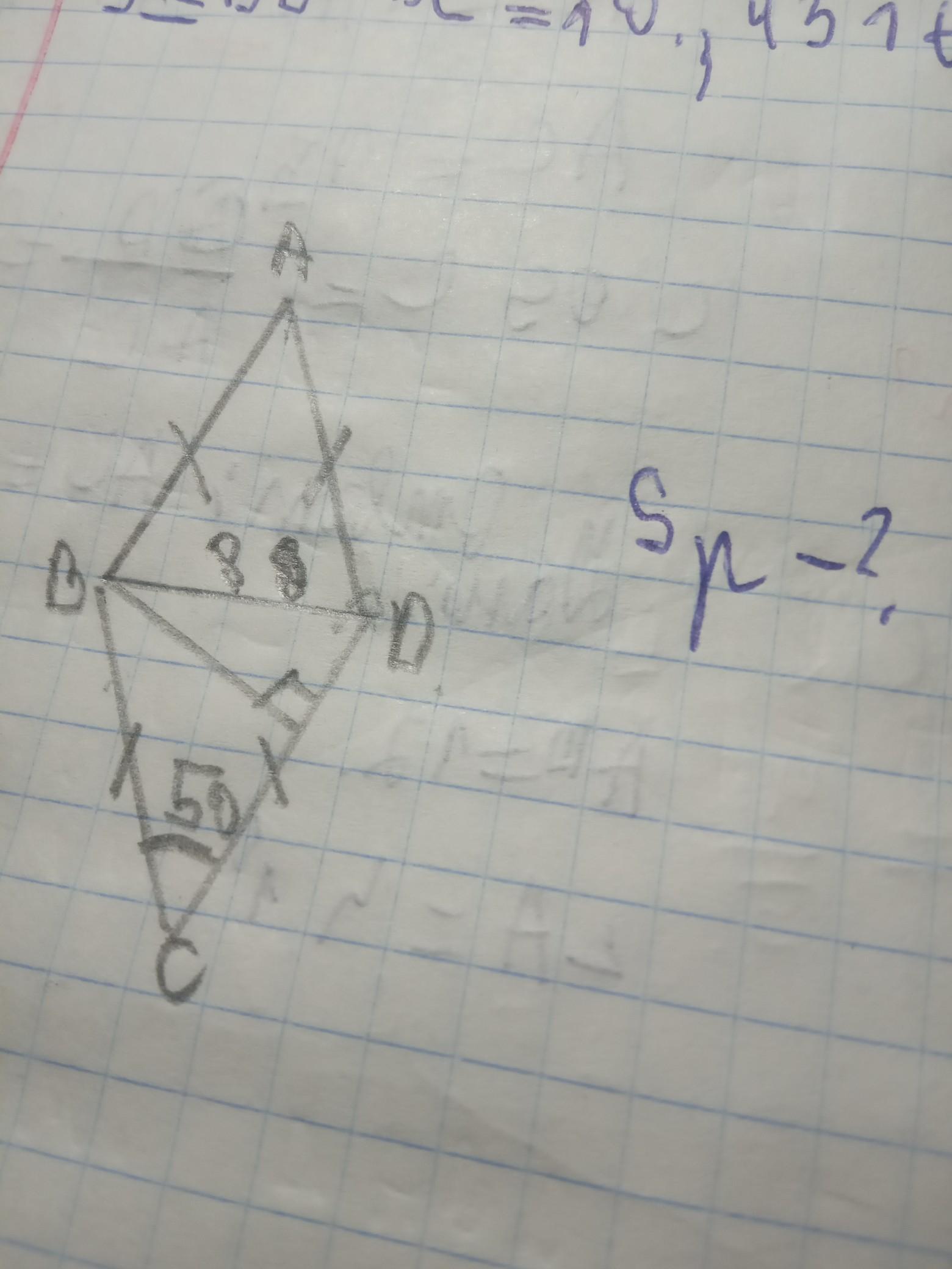 S=CD²sinBCD=8²*sin²50гр.*sin65гр./sin50гр.=
