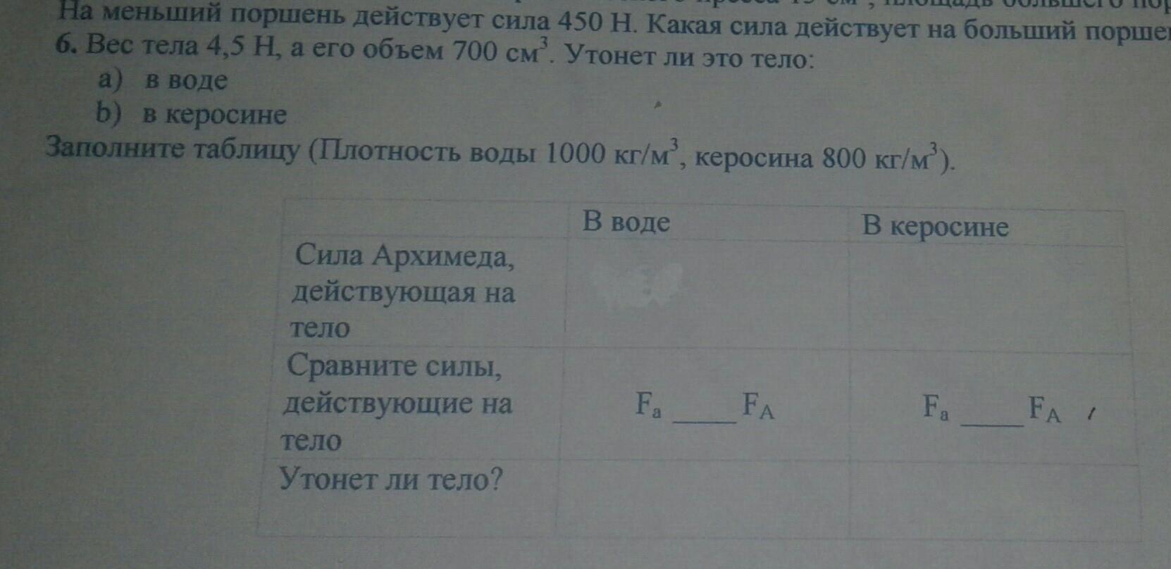 Я не поняла в таблице, сравнение силы, действующие на тело. можешь сдесь написать? Fa------FA ? что сюда мне писать?