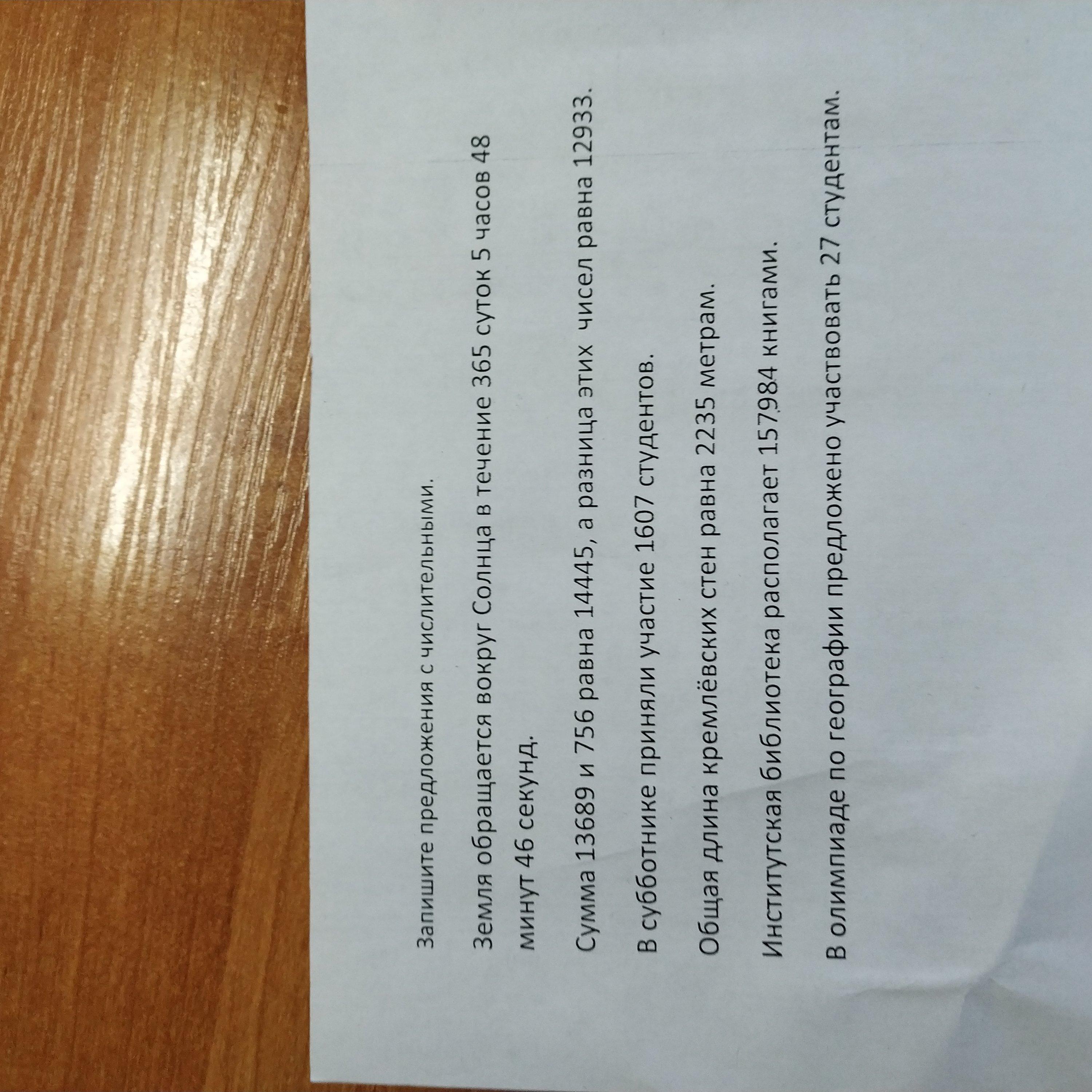 Земля обращается вокруг Солнца в течение трёхсот шестидесяти пяти суток пяти часов сорока восьми минут сорока шести секунд.