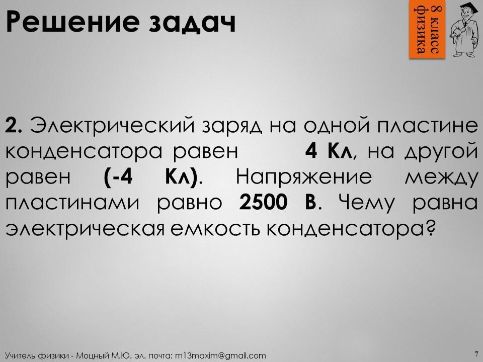 4Кл:2500В=0,0016Ф Ответ 0,0016 ф