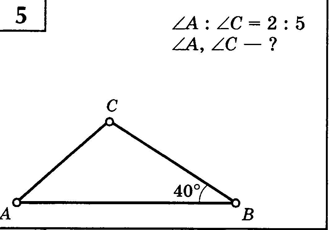 x = 20°, то ∠А = 2 · 20° = 40° и ∠В = 5 · 20° = 100°