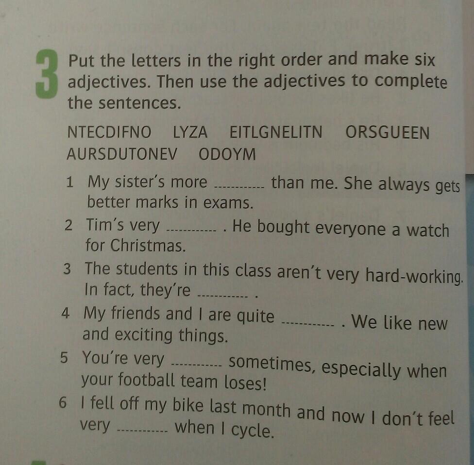 confident lazy intellegent (возможно исходное слово неправильно написано) generous adventurous moody