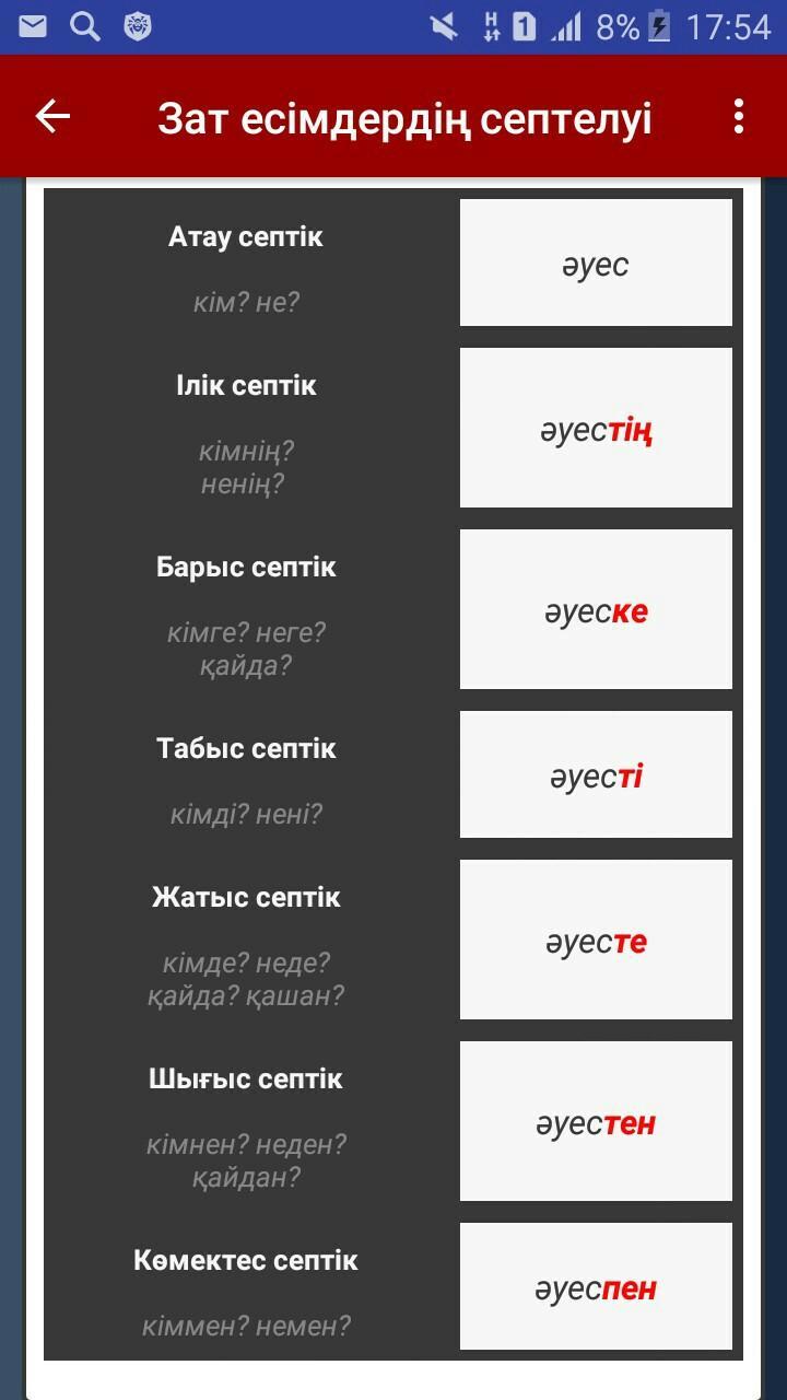 Слово әуес по падежам