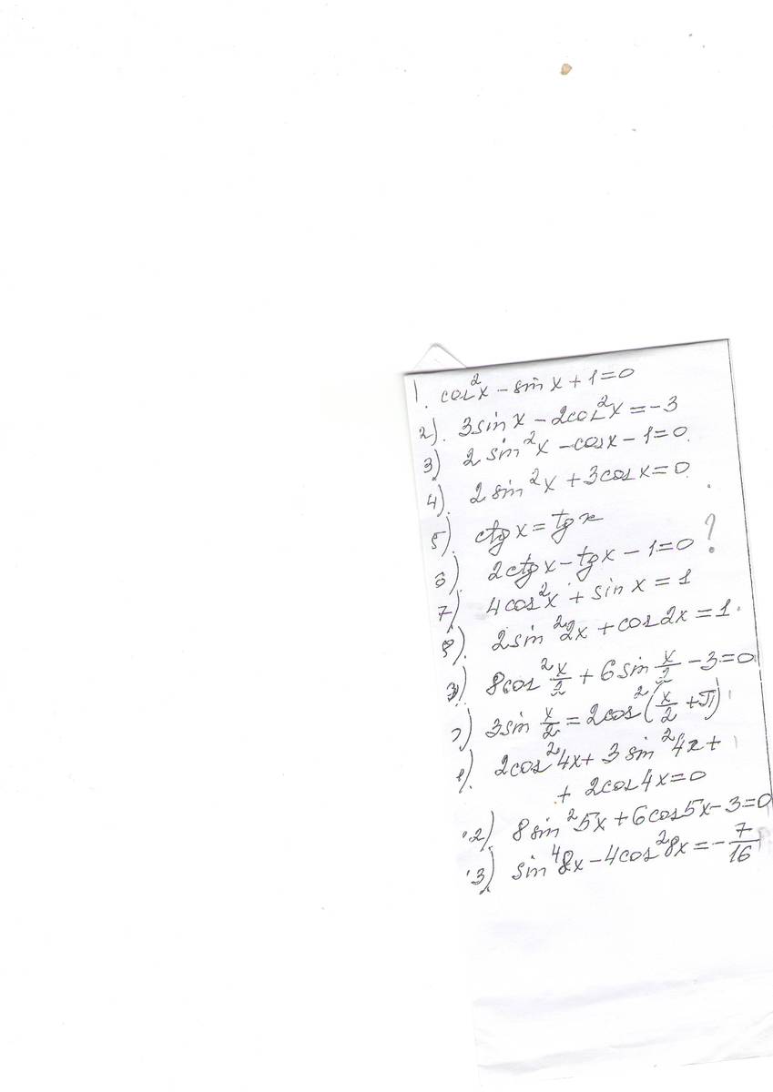 Следующие два уравнения решаются почти также, только по основному тождеству переходим к квадрату косинуса, а не синуса, в принципе образец изображён выше.