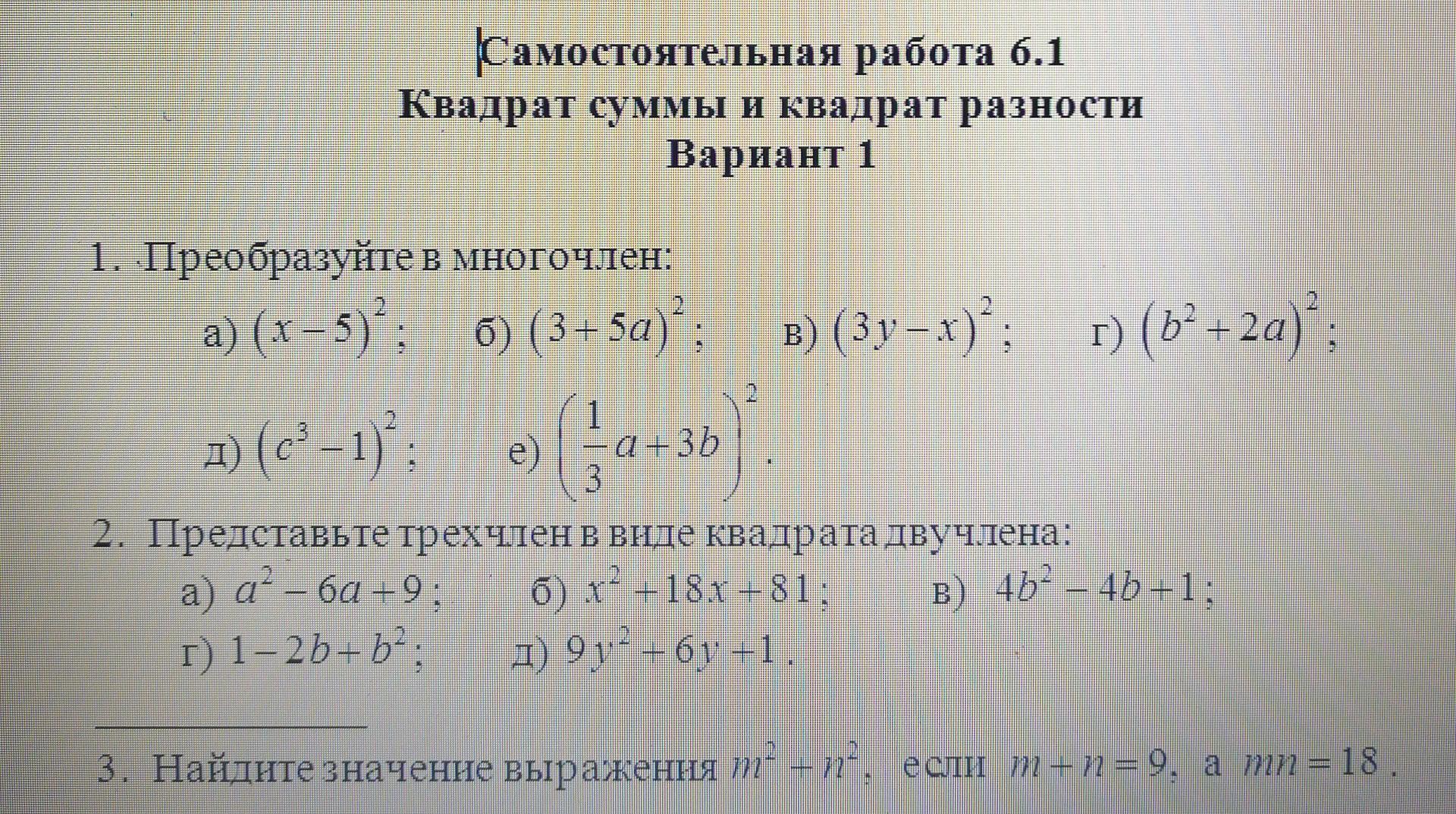е) (1/3а+3b)²=1/9a²+2ab+9b²