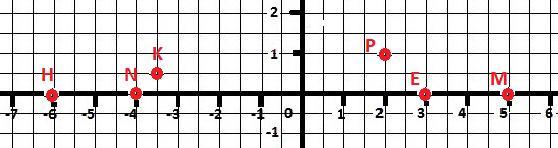 Постройте прямоугольную систему координат и отметьте на координатной плоскости точки Р(2;1); N(-4;0); E(0;3); K(-3,5;0,5); M(5;0); H(0;-6)