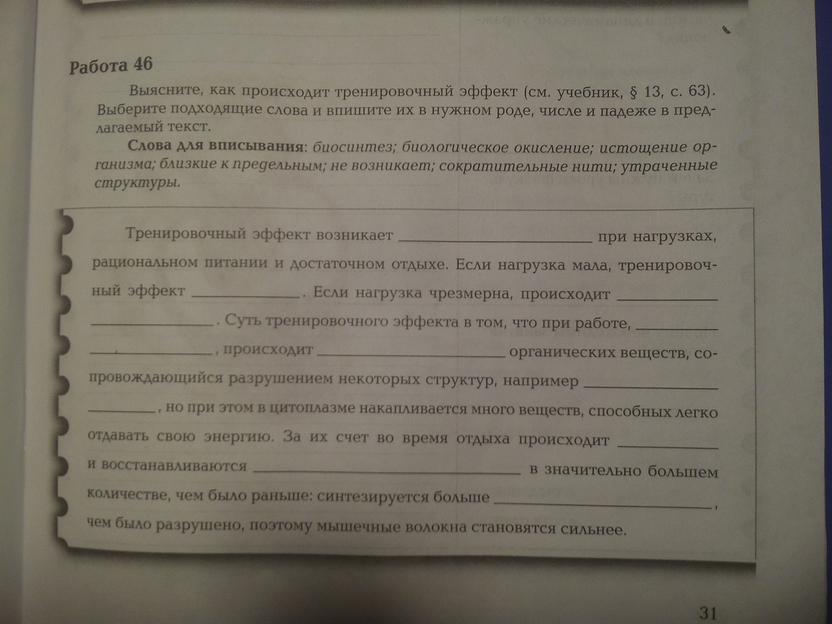Отставленный тренировочный эффект, сущность которого составляет активизация физической нагрузкой пластических процессов для избыточного синтеза разрушенных при работе клеточных структур и восполнение энергетических ресурсов организма. Этот эффект наблюдается на поздних фазах восстановления (обычно в пределах до 48 часов после окончания нагрузки).