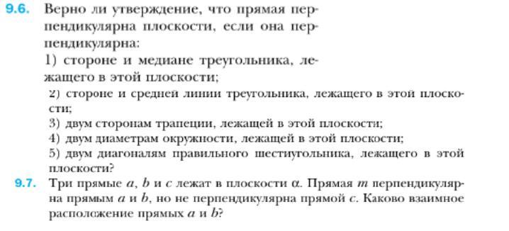 если прямая , не лежащая в плоскости, перпендикуляра двум пересекающимся прямым плоскости, то эта прямая перпендикулярна этой плоскости.