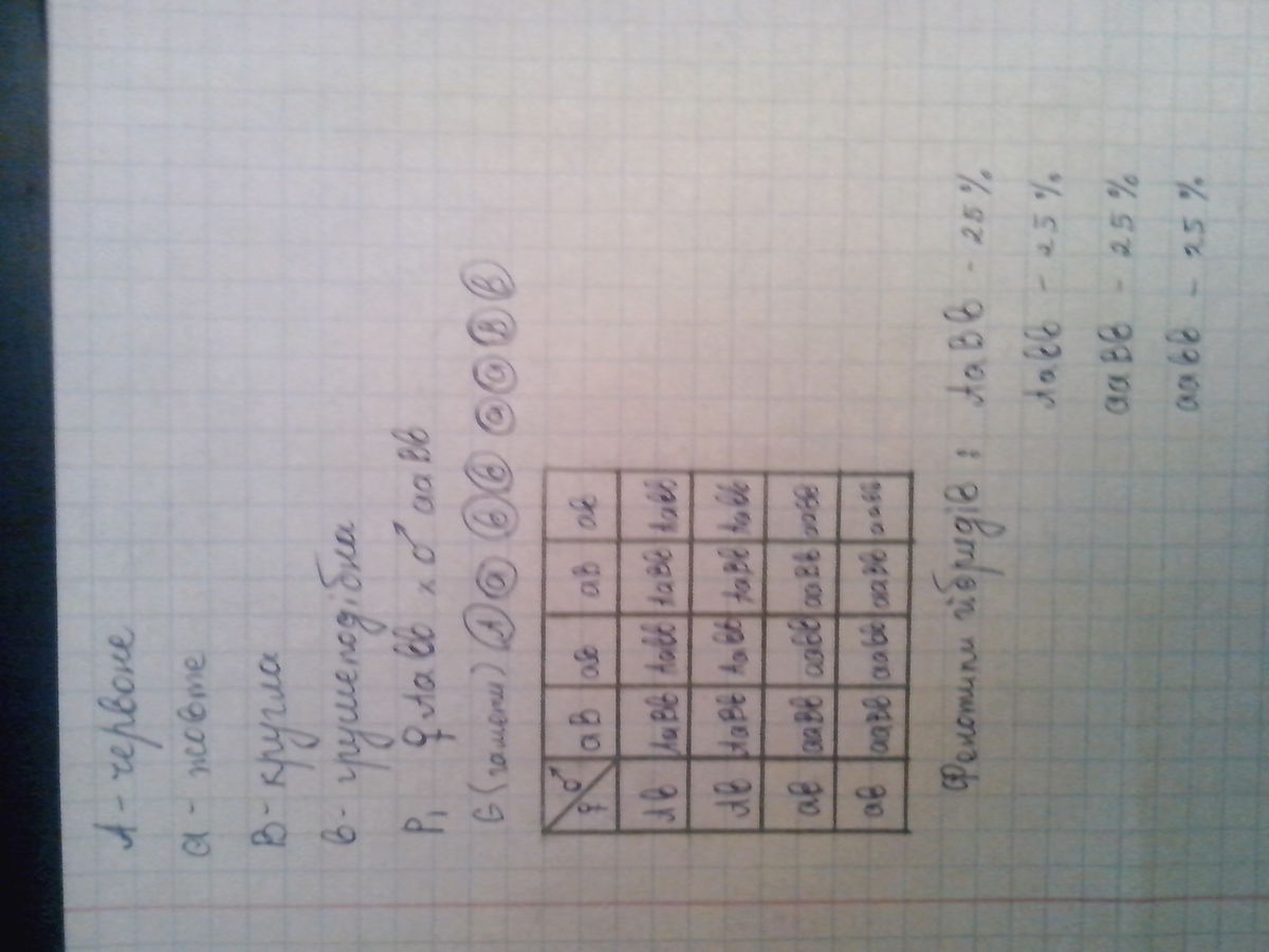 Розв’яжіть задачу. У помідорів червоне забарвлення плодів (А) домінує над жовтим (а), кругла форма (В) -- над грушоподібною (b). схрестили гетерозиготну рослину з червоним забарвленням і грушоподібною формою плодів із гетерозиготною рослиною з жовтим забарвленням і круглою формою плодів. Якими будуть за фенотипом гібріди першого покоління?