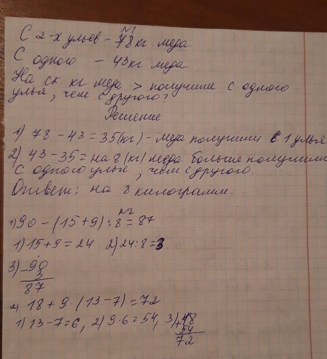 С двух ульев за год поучили 78 кг мёда.С одного из них поучили 43 кг. На сколько кг мёда больше получили с одного улья чем с другого?