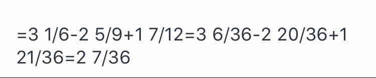 =3 1/6-2 5/9+1 7/12=3 6/36-2 20/36+1 21/36=2 7/36