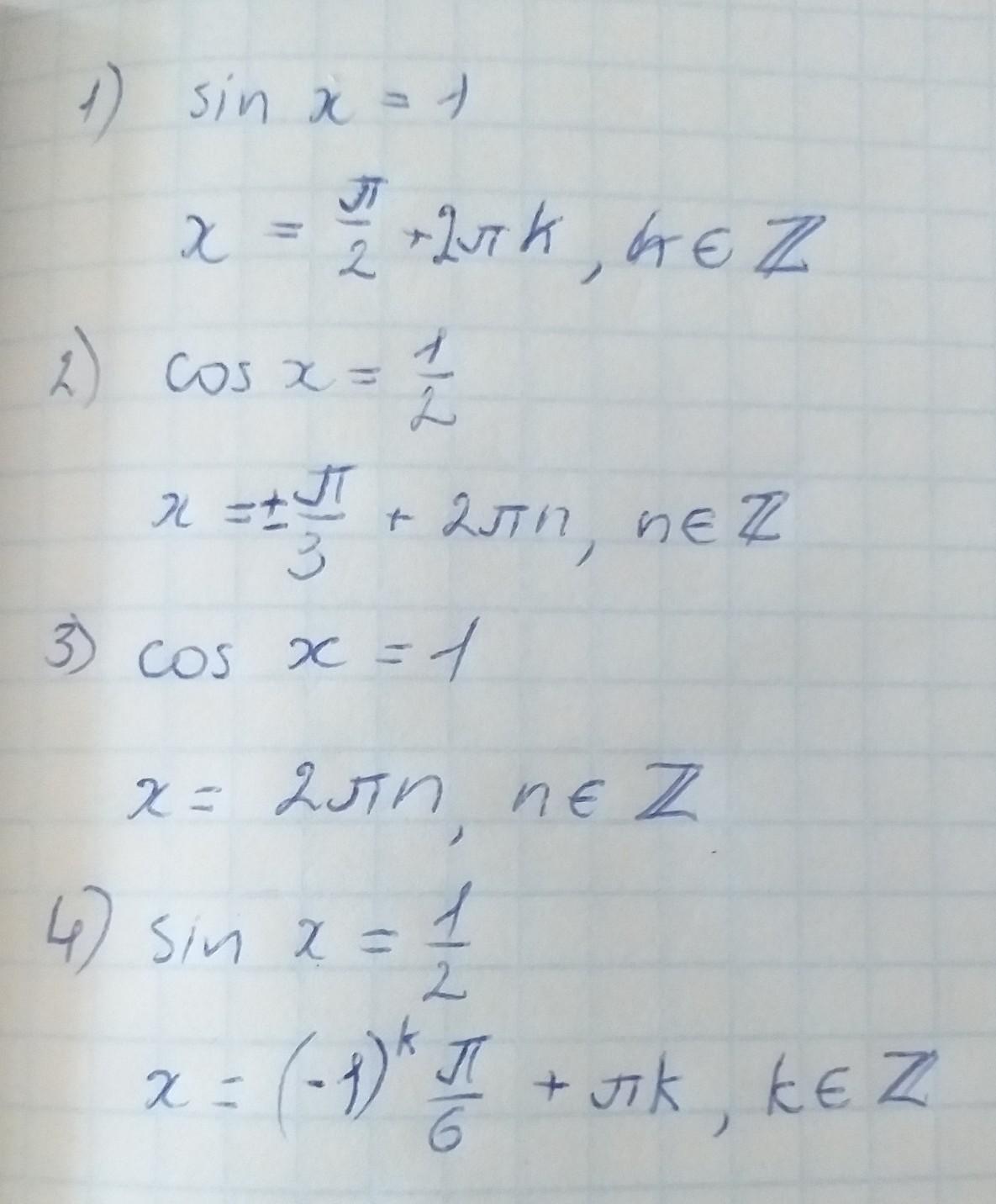 Решите простейшие тригонометрические функции