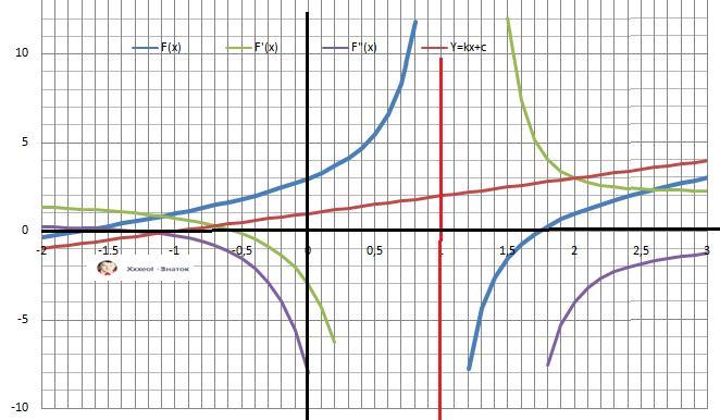 Y"(x)= 2*(x-1}/(x-1)²- 2*(x²-2x+3)/(x-1)³ = -4/(x-1)³=0
