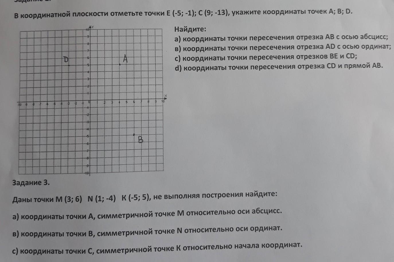 В координатной плоскости отметьте точки E (-5; -1); C (9;-13), укажите координаты точек A; B; D.