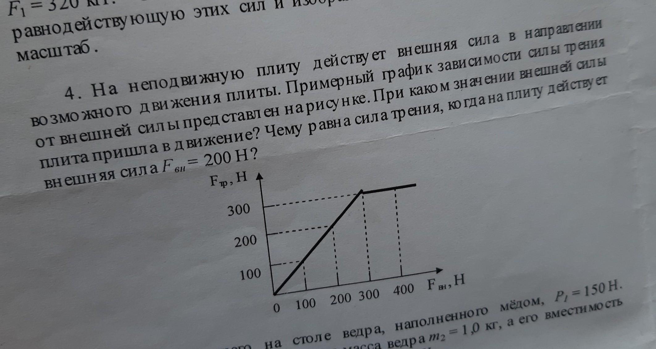 на неподвижную плитуидействует внешняя сила винаправлении возможногоидвижения плиты. прикаком значенииивнешней силы плита пришла в движения? ему рпвна силаитрения, когда плитуидействует внешняя силаи F вн=200 H?