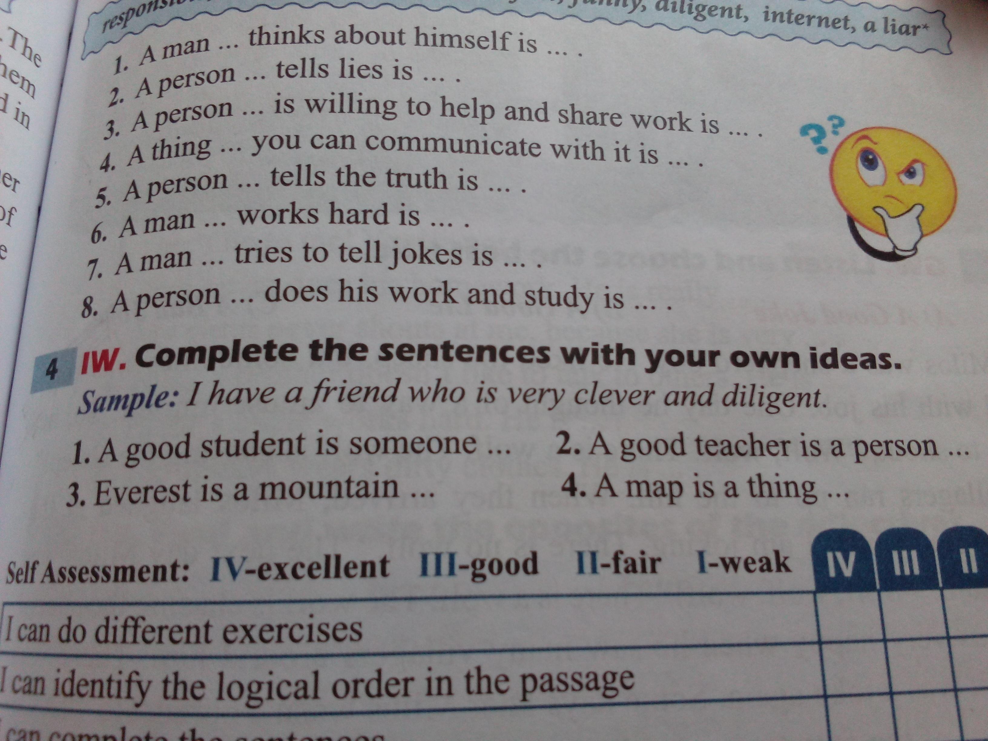 a good student is someone clever a good teacher is a person who teaches students Everest is a mountain that is very very high a map is a sing that shows the correct way