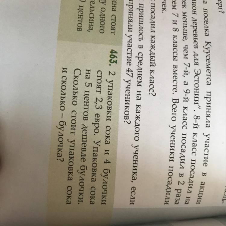 Тогда упаковка сока стоит (47 - 5) = 42 цента