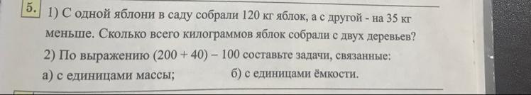 2) 120 + 85 = 205 яблок собрали с 2 яблонь