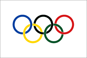 Олимпийский флаг — белое шёлковое полотнище с вышитыми на нём пятью переплетёнными кольцами голубого, чёрного, красного (верхний ряд), жёлтого и зелёного (нижний ряд) цветов.