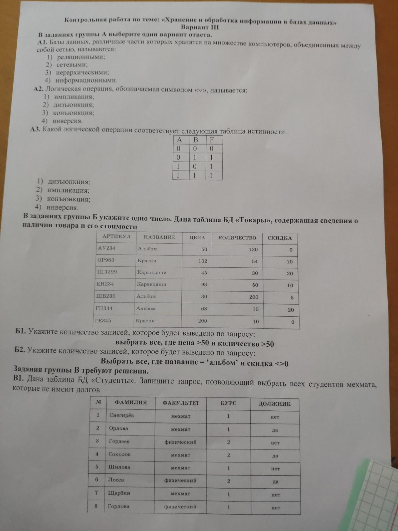 В1. выбрать все, где должник = 'нет' (судя по заданию выше)