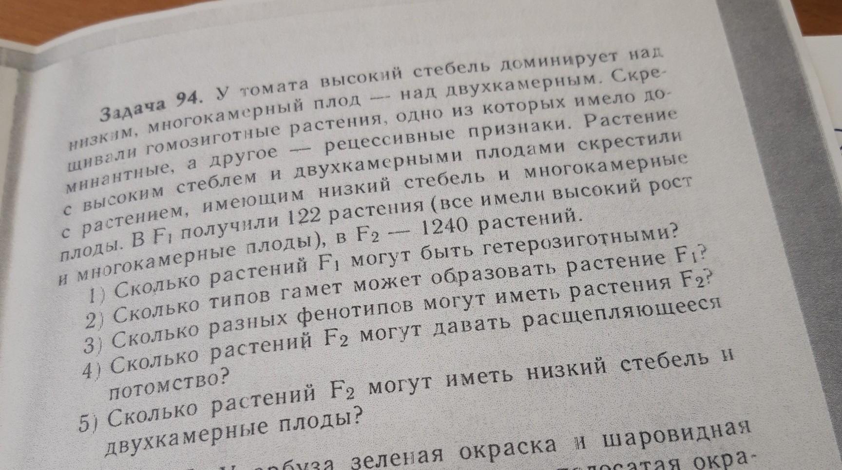 3) 1 фенотип (растение с высоким стеблем и многокамерными плодами)