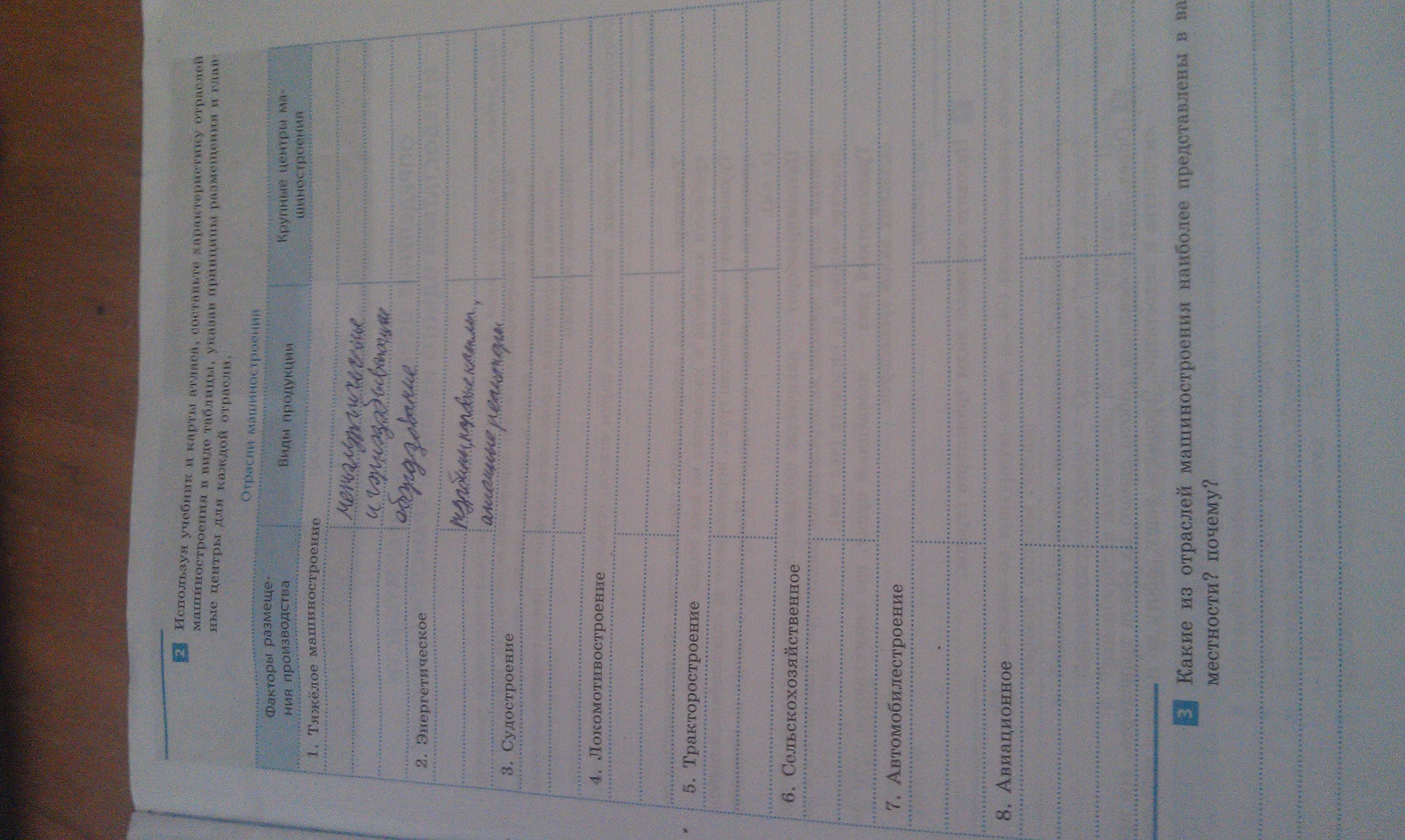 Используя учебник и карты атласа составьте характеристику отраслей машиностроения в виде таблицы 8 класс