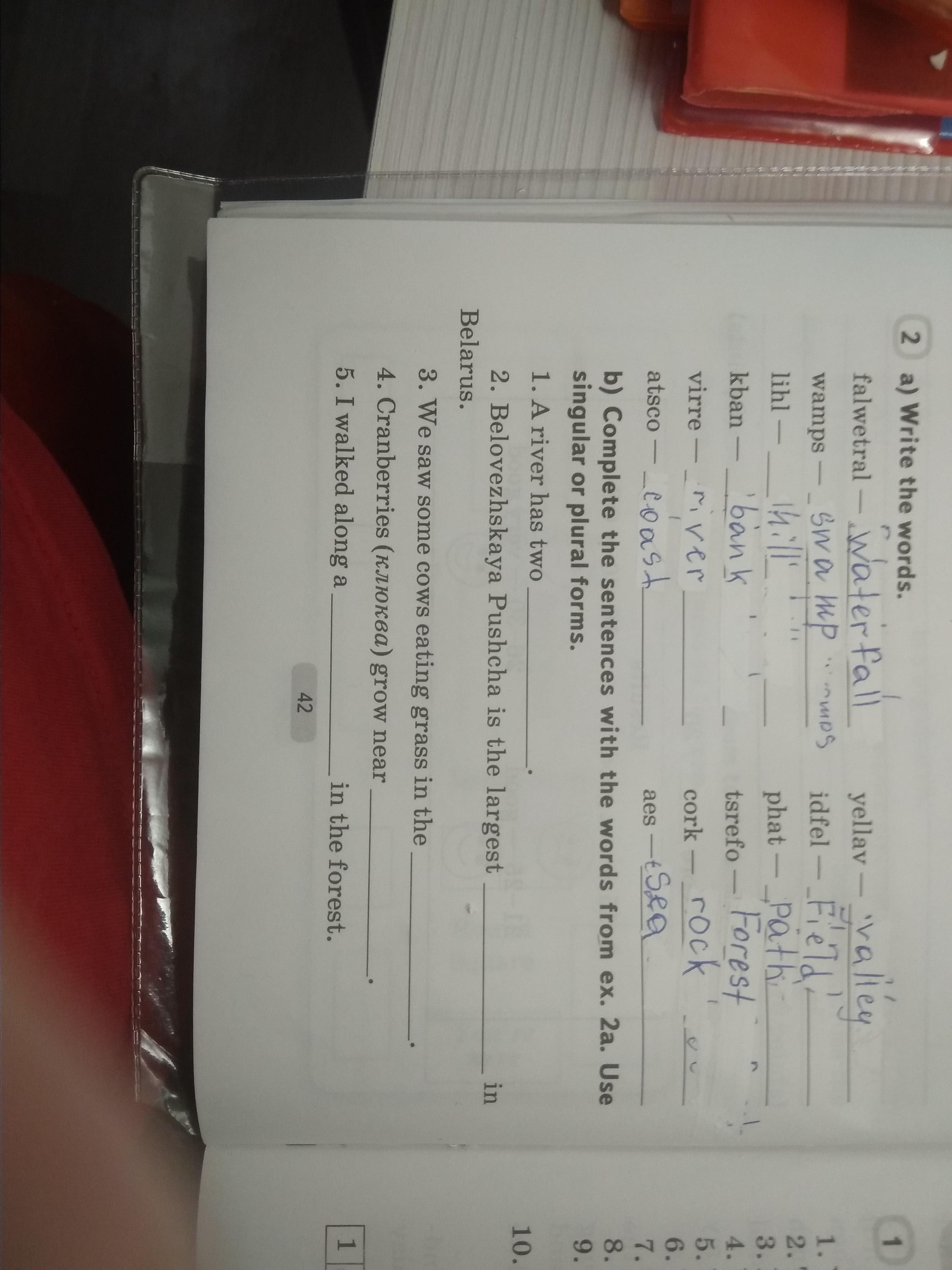 Помогите с 42 2 b), с. 43 2 b) and Lesson 2 упр 1