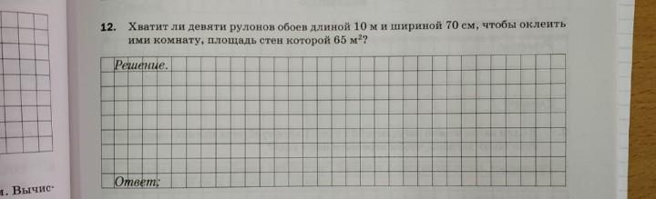 2) Разделим площадь комнаты на площадь обоев: 65/7 = 9,28м^2