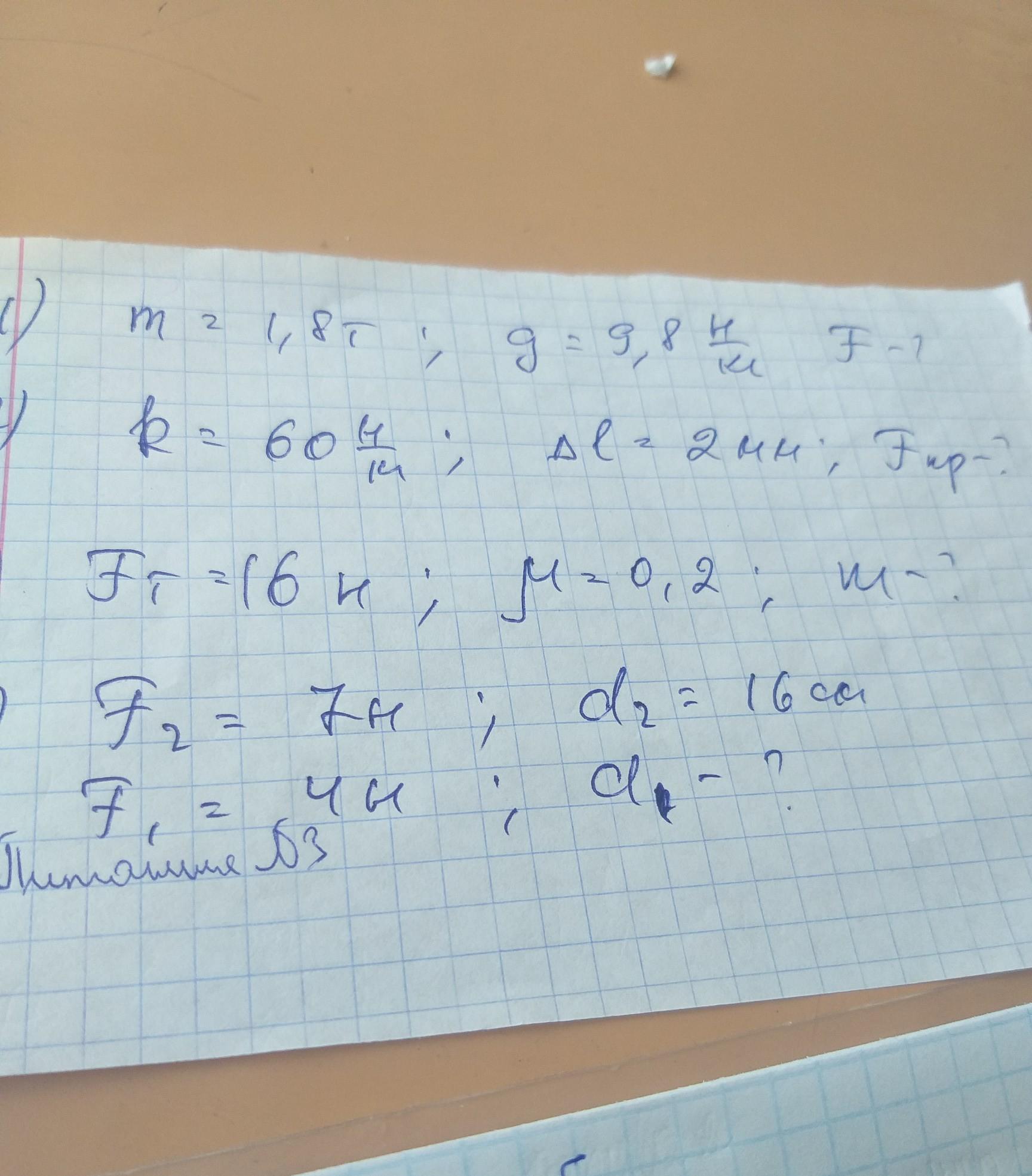 1)F=mg=1800(кг)×9.8(Н/кг)=17640(Н)