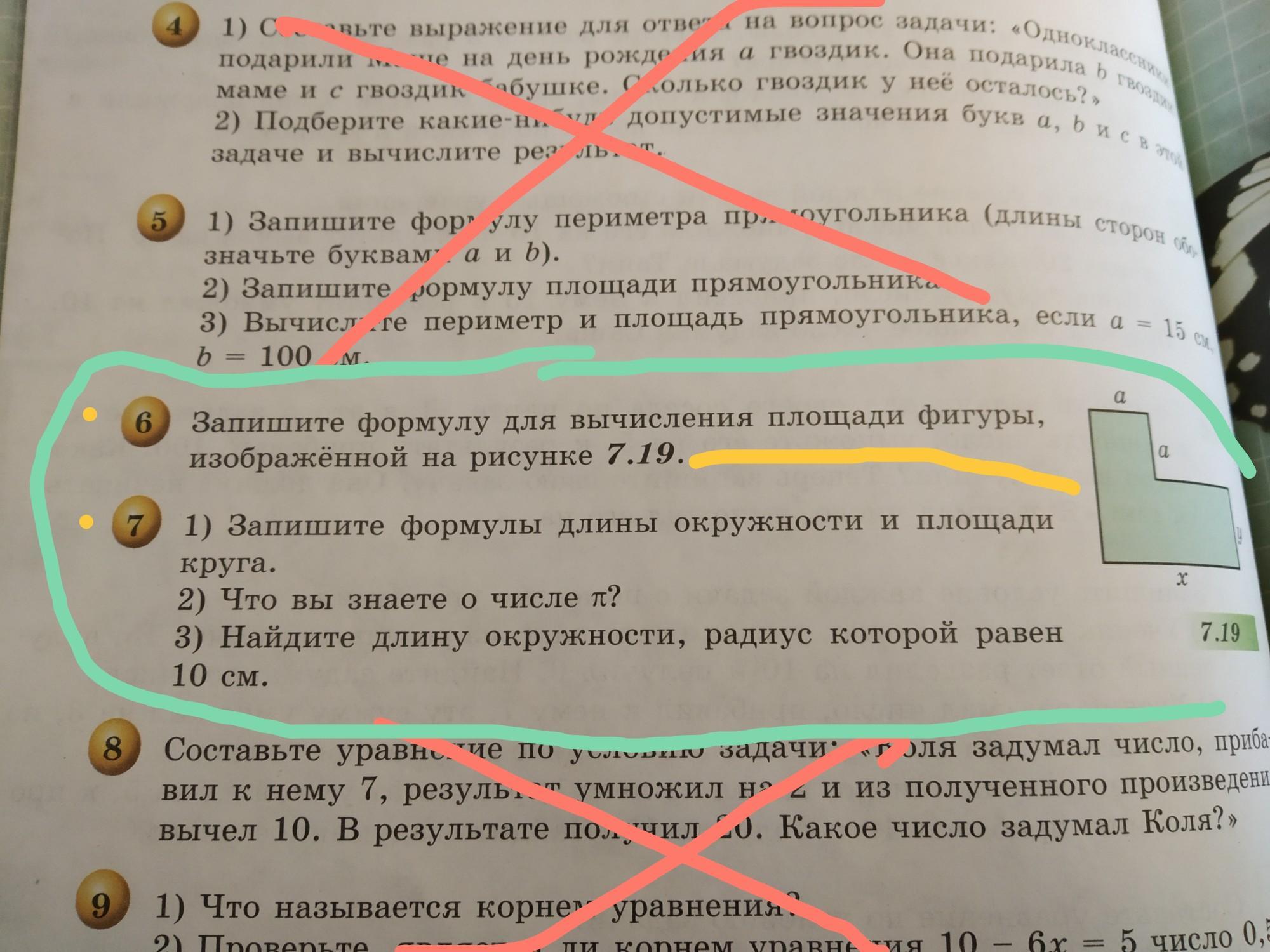 #6. Фигуру 7.19 можно разделить на квадрат и прямоугольник. Формула квадрата – а•а=а²