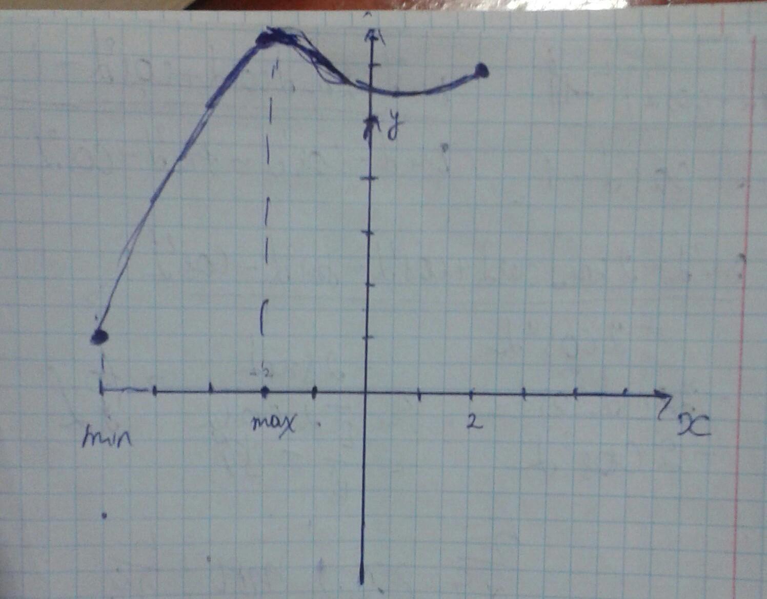 xmax= -4, xmax=3,xmin= -1,f(-4)=5,f(3)=2,f(-1)= -2