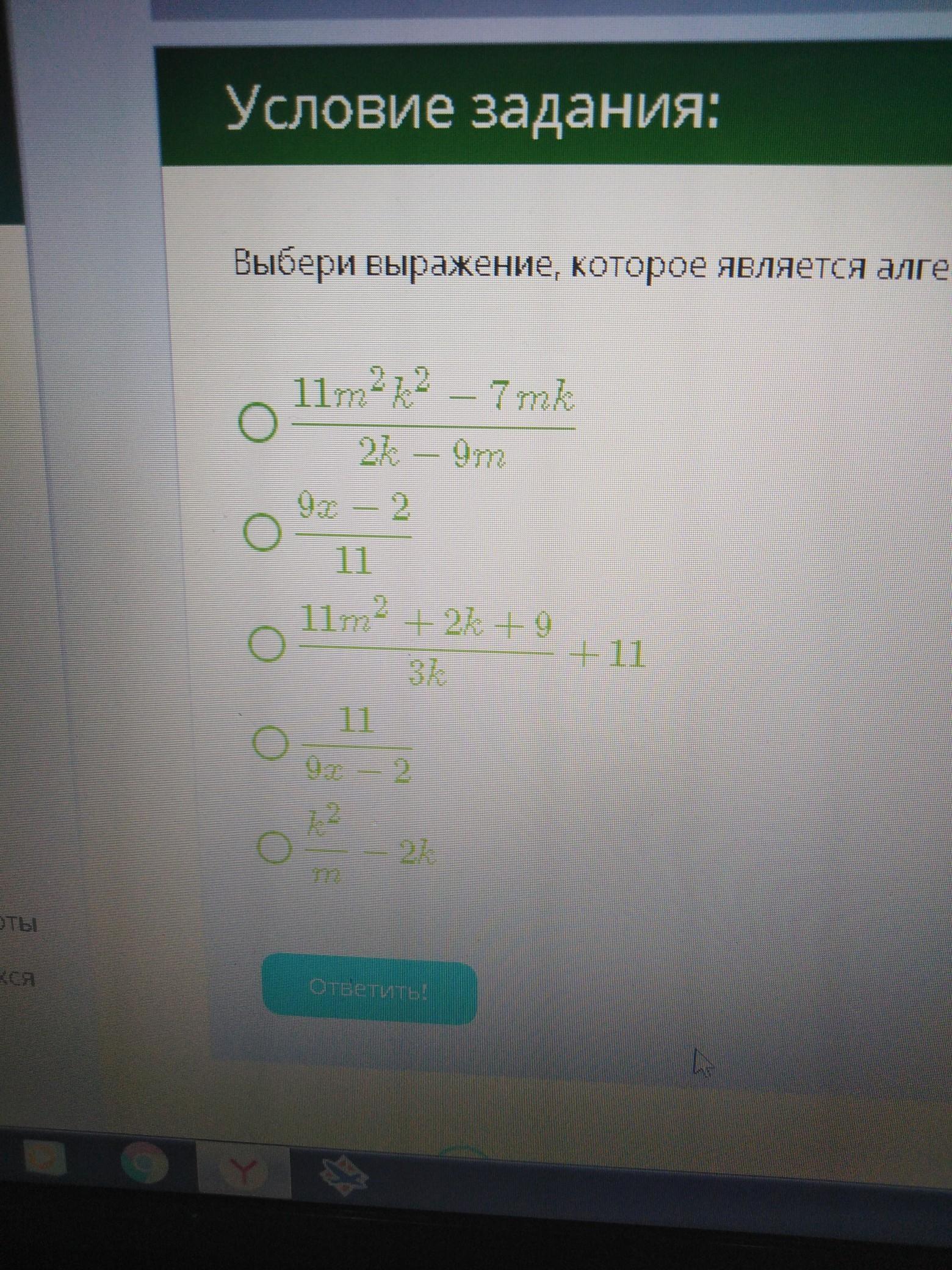 Алгебраическая дробь это дробь, в которой и числитель и знаменатель являются многочленами. В данном случае это дробь номер 1