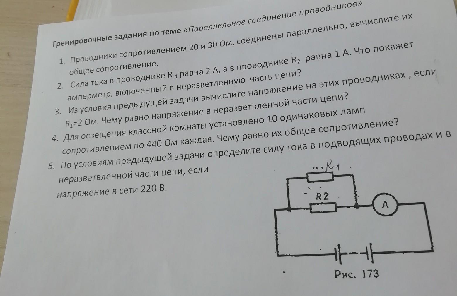 Из 4-й задачи мы получили, что общее сопротивление 10 одинаковых ламп по 440 Ом каждая равно 44 Ом (т.к. лампы должны быть соединены параллельно.