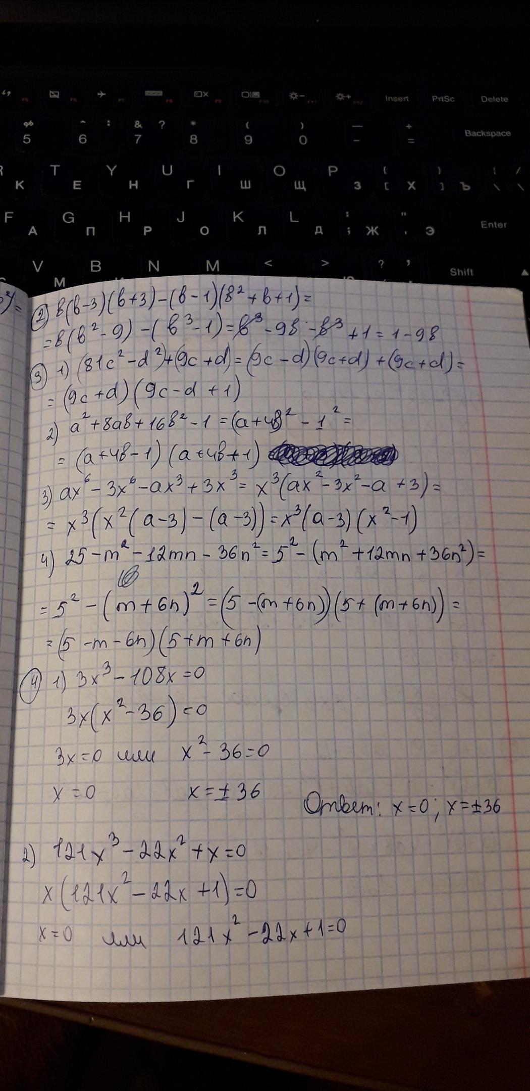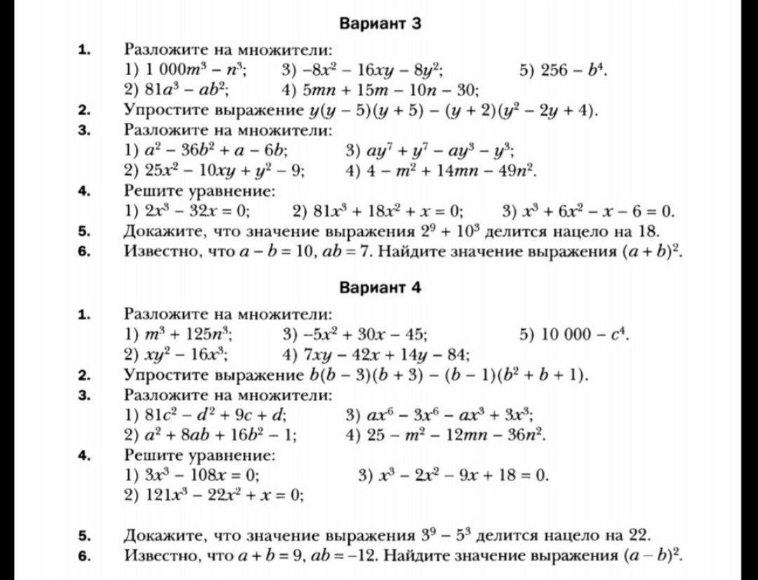 убила почти час на расписание решения.слишком многого хотите,на примере решения 1 варианта-разбирайтесь и учитесь решать сами.сложного ничего нет-всё по формулам,где вынести за скобки,где разложить по формуле.где решение квадратного уравнения.ребят,ну это не серьезно,вы даже не пытаетесь учиться решать такие простые примеры.а что дальше?