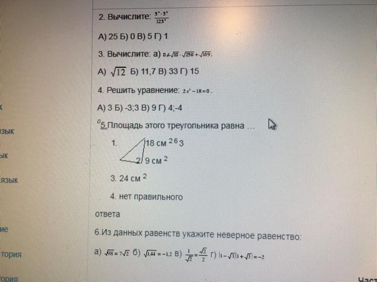 5) Площадь прямоугольного треугольника равна