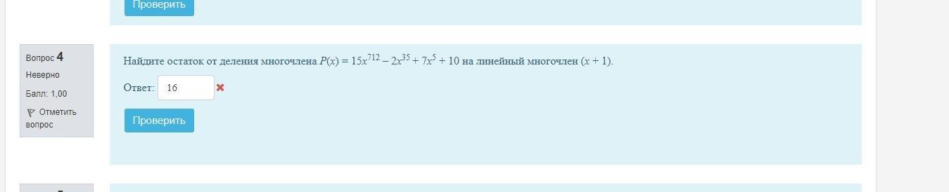 По теореме Безу остаток от деления f(x) на (x-b) равен f(b)