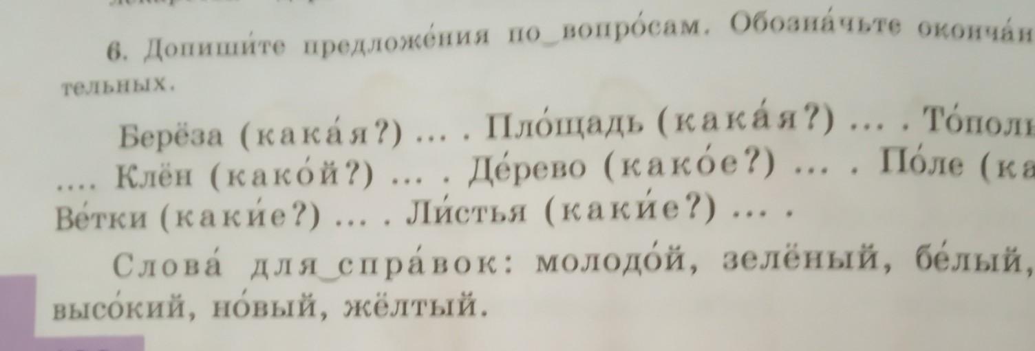 Берёзы белая, площадь новая, тополь молодой, клён высокий, дерево зелёное, поле жёлтое... дальше не видно