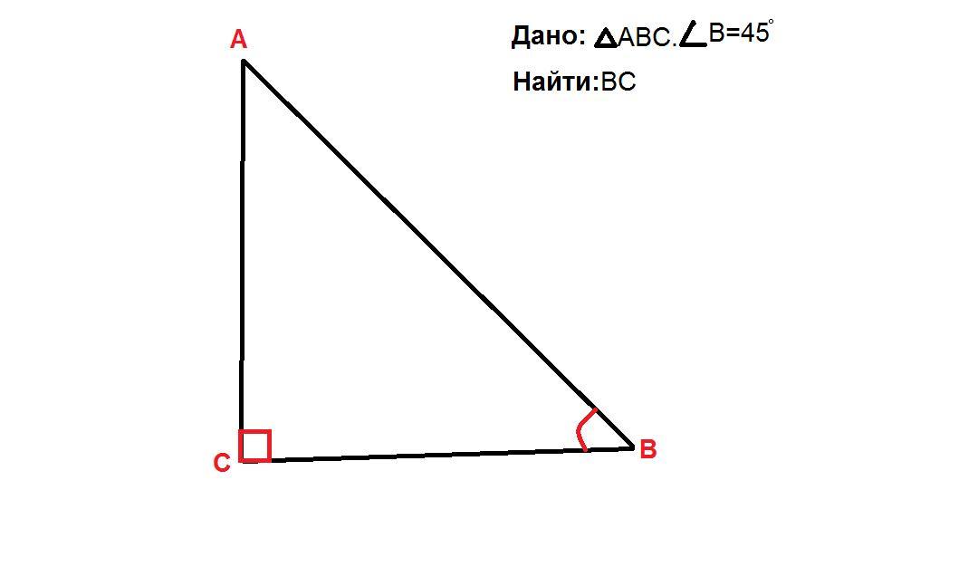 Дополнительные данные взял у комментариях! Треугольник АВС - прямоугольный(Кут С=90 градусов); Кут А=90-кут В=45градосов, то треугольник АВС-равнобедренный, то АС=ВС=8см