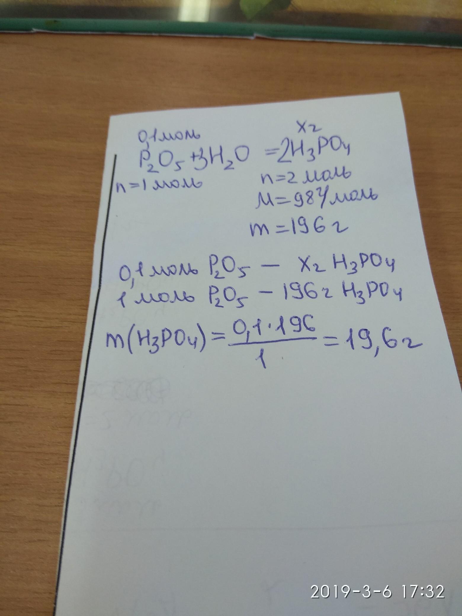 Вычислите массу ортофосфорной кислоты которую можно получить при растворении в воде 0,1 моль оксида фосфора (V)