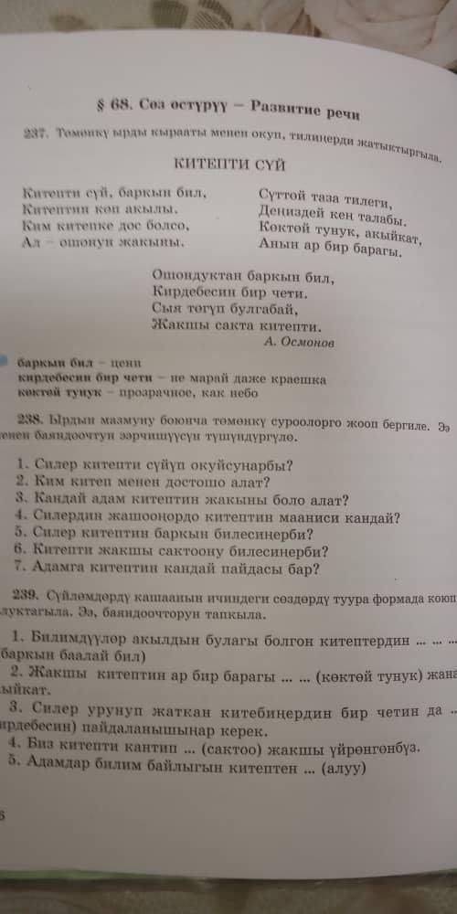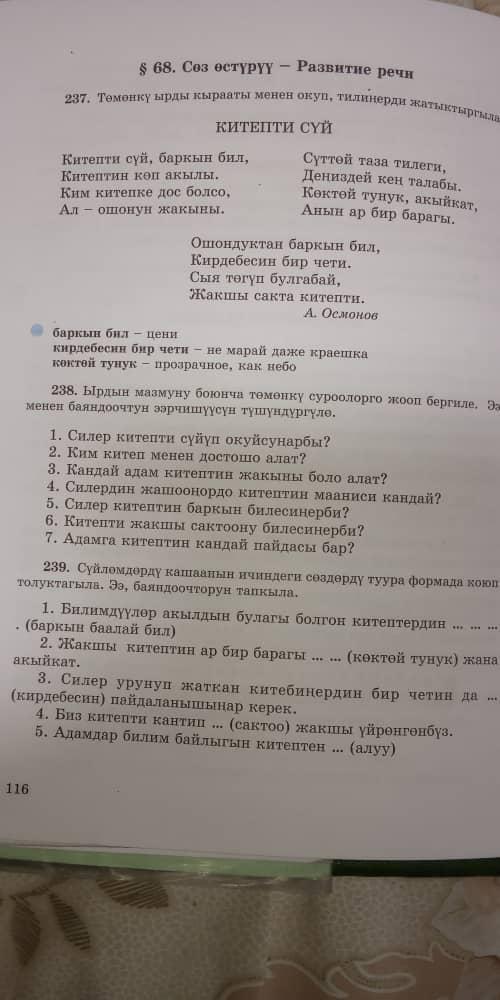 6)Ооба билебиз китепти булгабай таза сакташ керек тебелендиге койбош керек