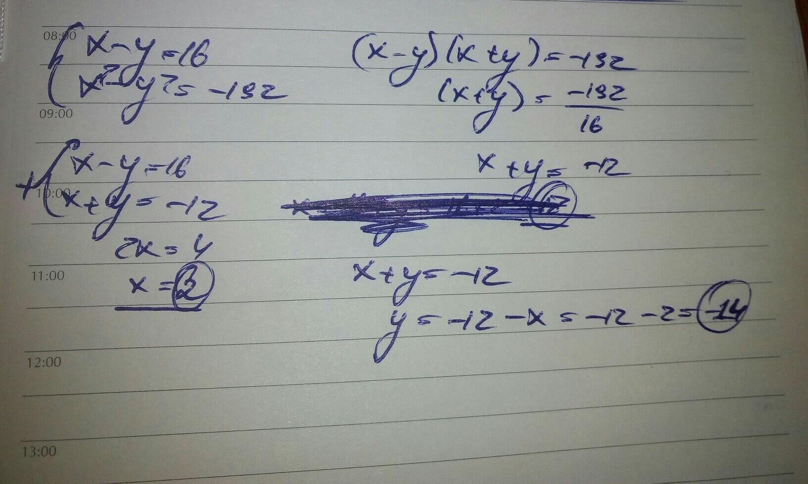 Решите задчу с помощью составления уравнения.Разность двух чисел равна 16,а разность их квадратов равна -192.Найдите эти числа. ПЛИЗЗЗЗ