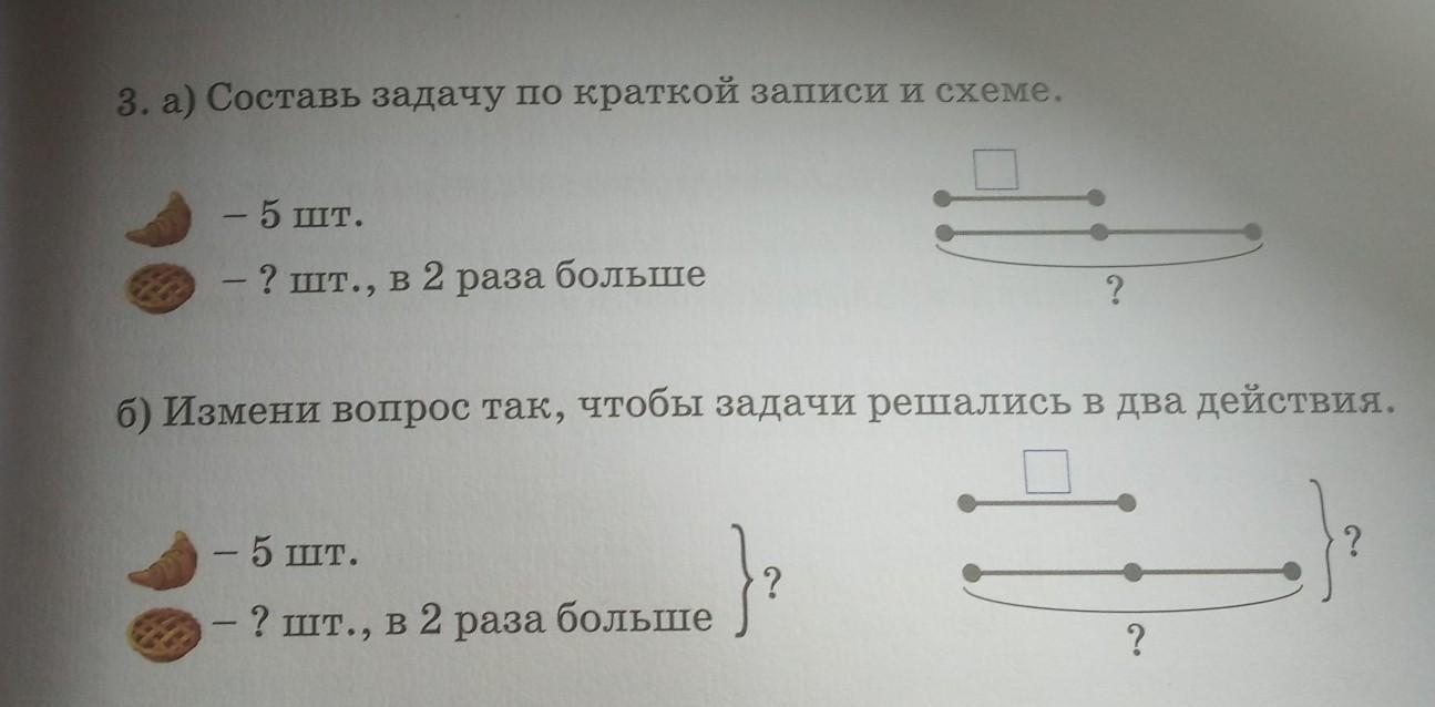 б) Петя пошел в магазин и купил пять круассанов. Сколько Петя купил пирогов и круассанов всего, если известно, что пирогов он купил в два раза больше?