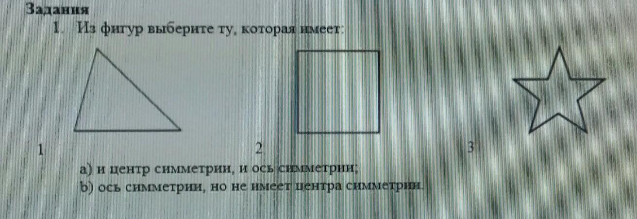 По картинкам(см внизу) к пункту а подходит квадрат и по логике к б подходит звезда, но вроде центр у неё тоже есть.