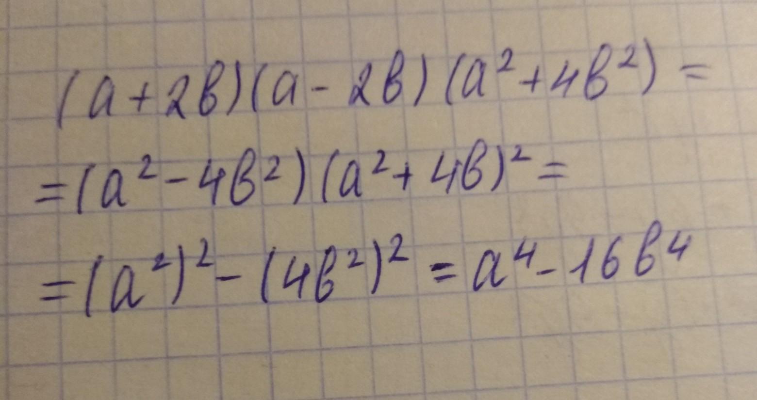 Упростить: (а+2в)(а-2в)(а^2 +4в^2 )