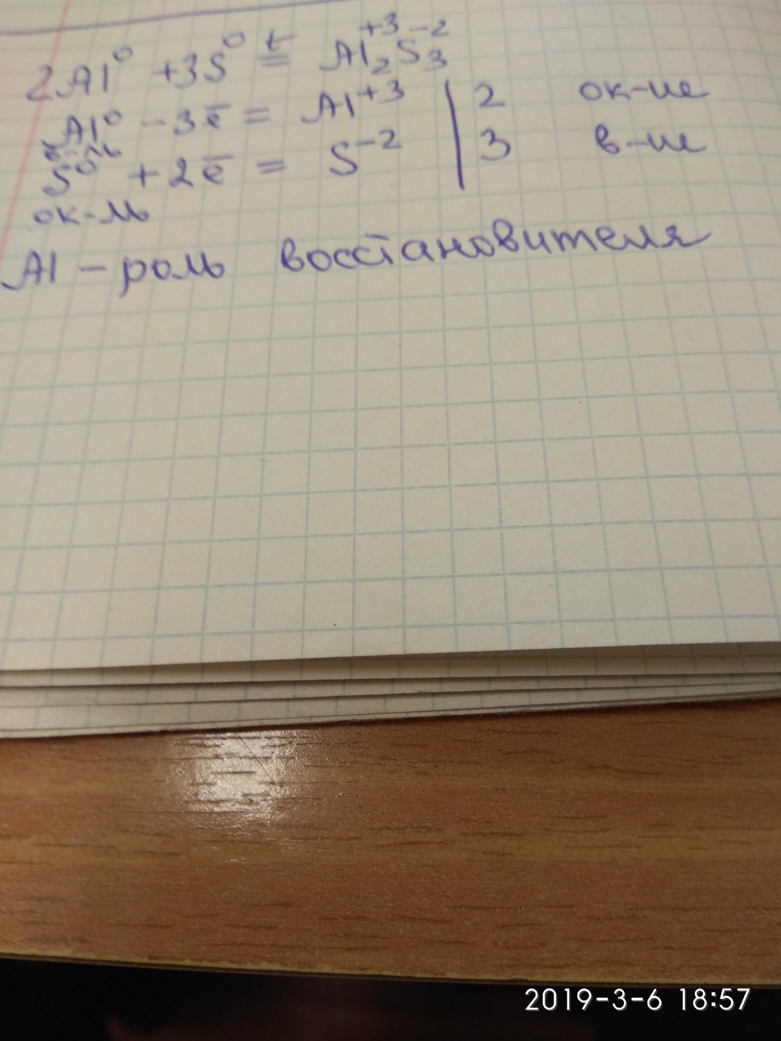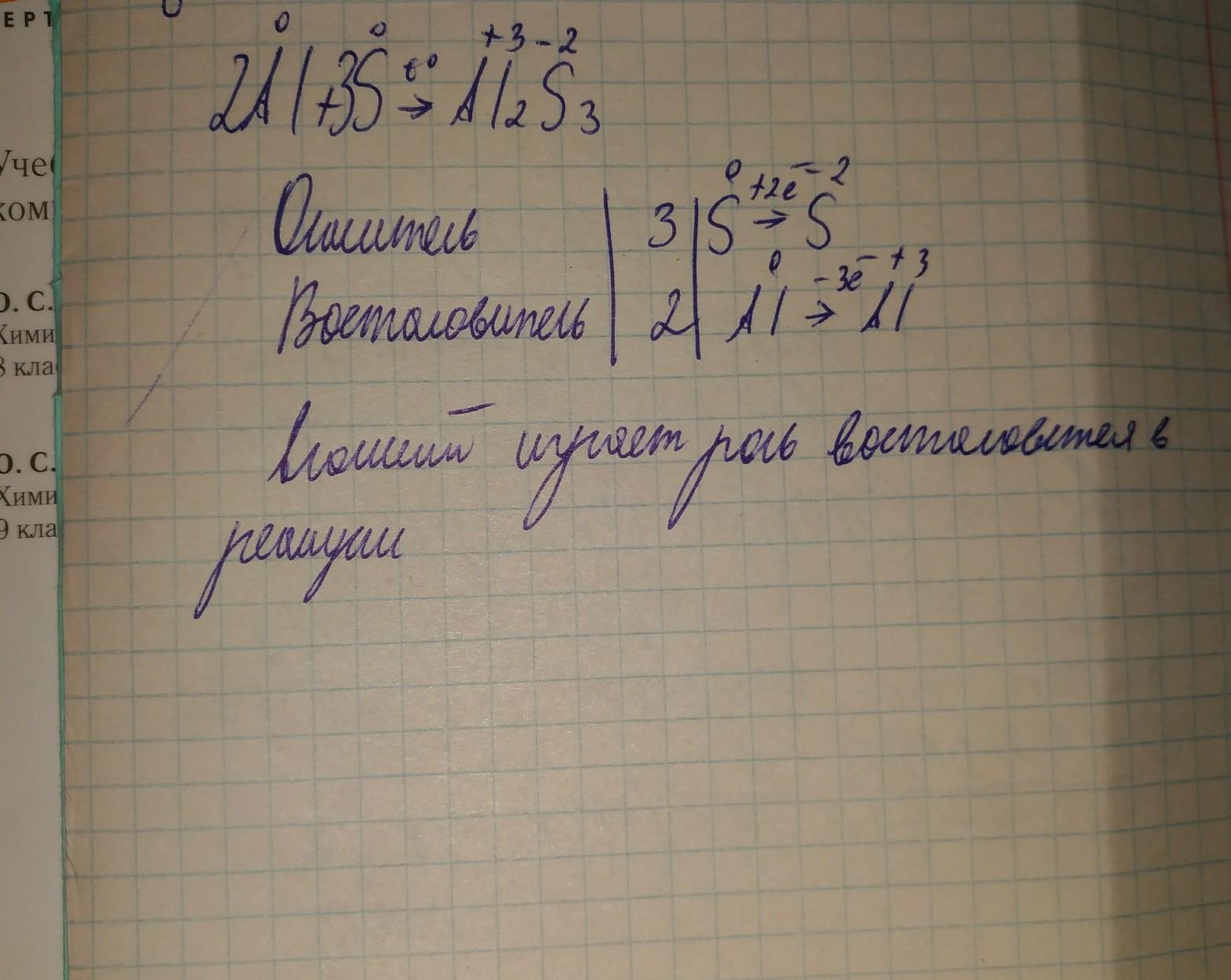 Смесь порошкообразных серы и алюминия при нагревании вспыхивает. Напишите уравнение реакции и схему электронного баланса. Какую роль в реакции играет алюминий?