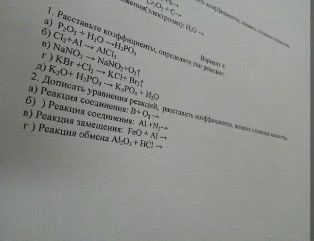 г) Р. обмена: Al2O3 + 6HCl → 2AlCl3 + 3H2O - хлорид алюминия + вода