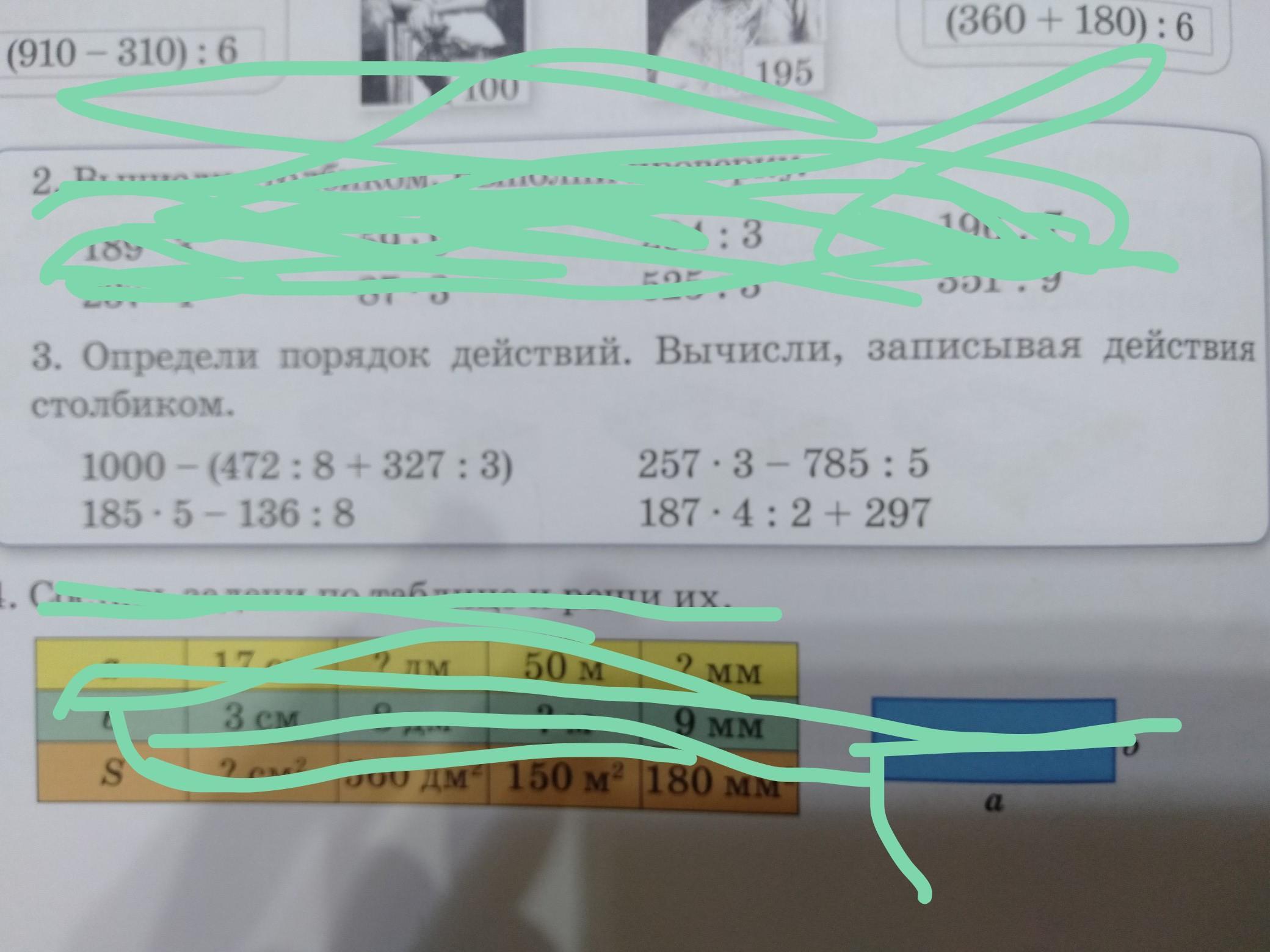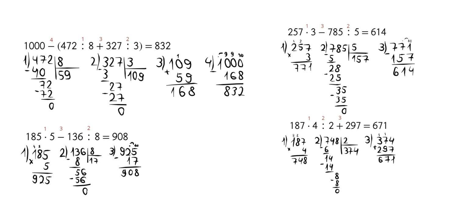 определи порядок действий и вычисли записывая действия столбиком. 1000-(472:8+327:3)