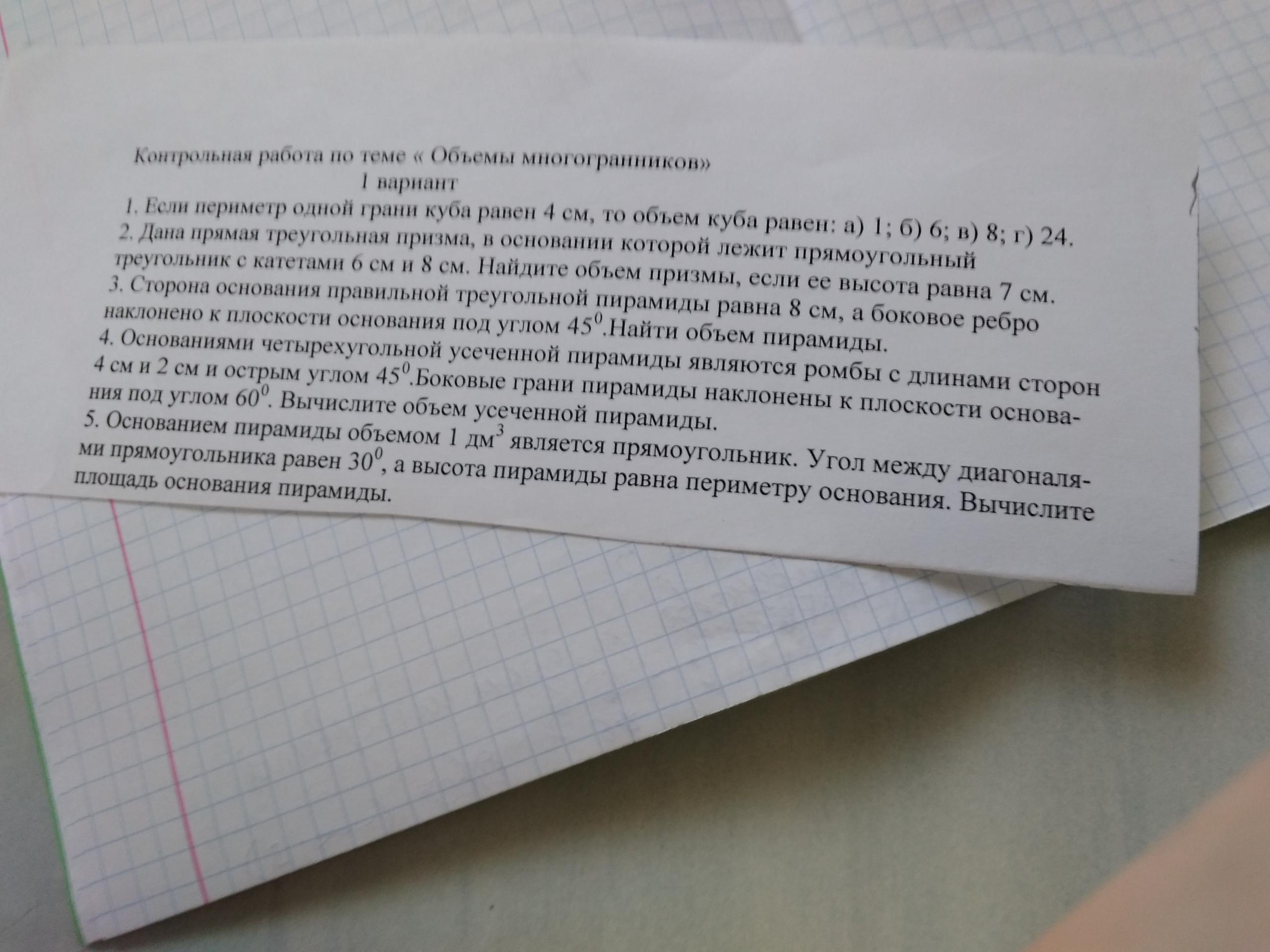 1) Грань куба -квадрат. Если периметр = 4, значит, сторона квадрата = 1.
