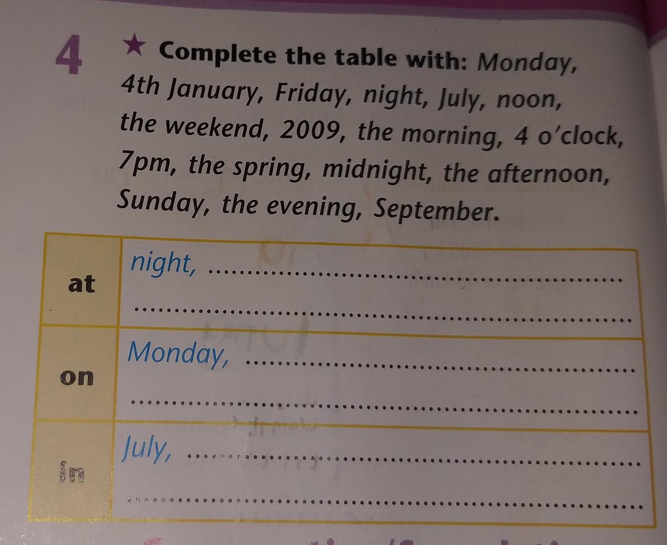 at:the weekend,4 0 clock, 7 pm,midnight.